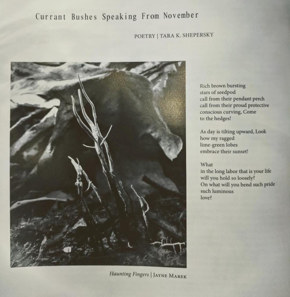 My own contribution is a short poem, Currant Bushes Speaking from November.