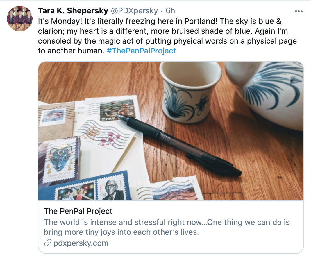 The project runs for a year (at least), so if you or someone you know might be interested in slow and thoughtful conversation, supporting the USPS, and supporting your local (or not-so-local) poet, consider writing me a letter.